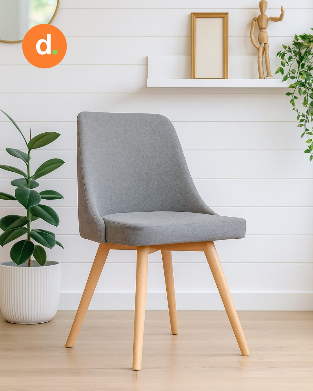 Sillas modernas con diseño escandinavo, ideales para comedores o espacios de trabajo. Su asiento tapizado en tela gris suave brinda una comodidad superior, mientras que las patas de madera clara aportan calidez y estilo natural. Combinan a la perfección con ambientes luminosos, minimalistas o nórdicos.