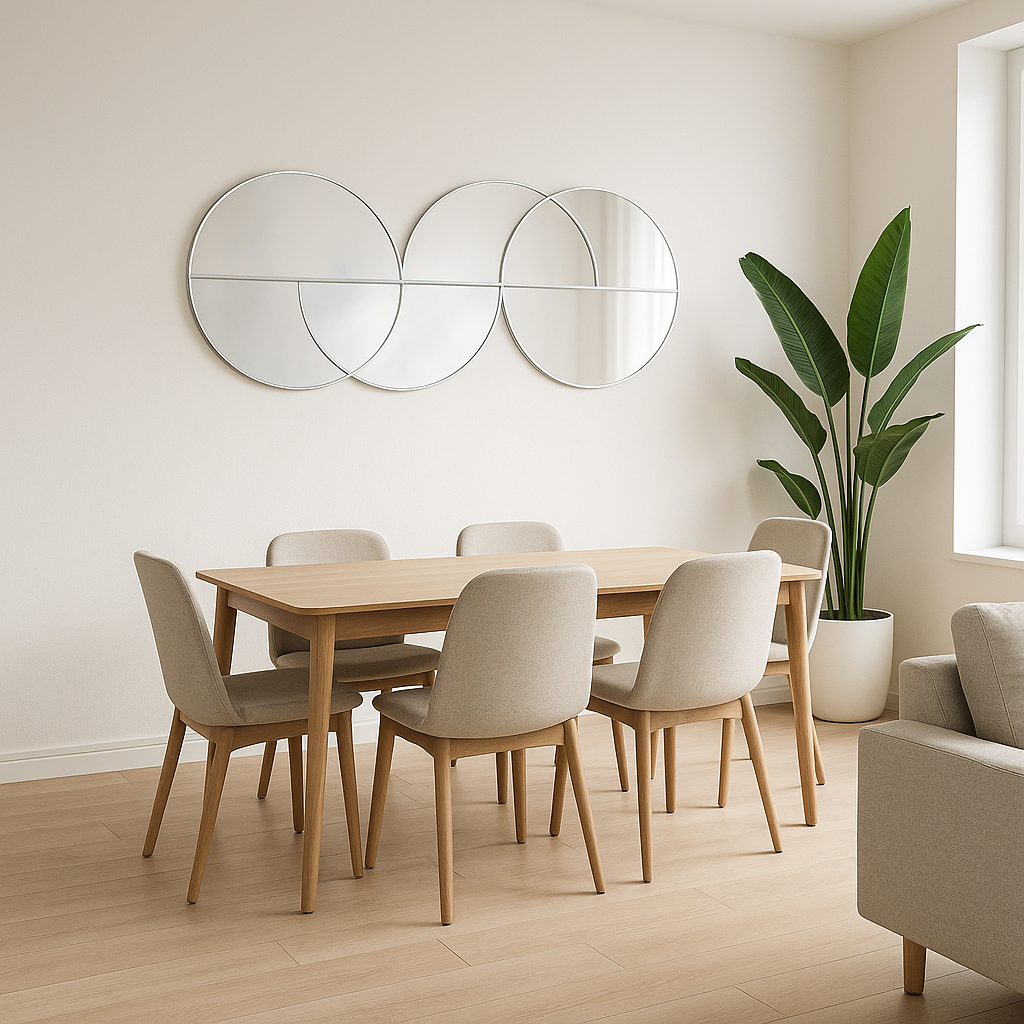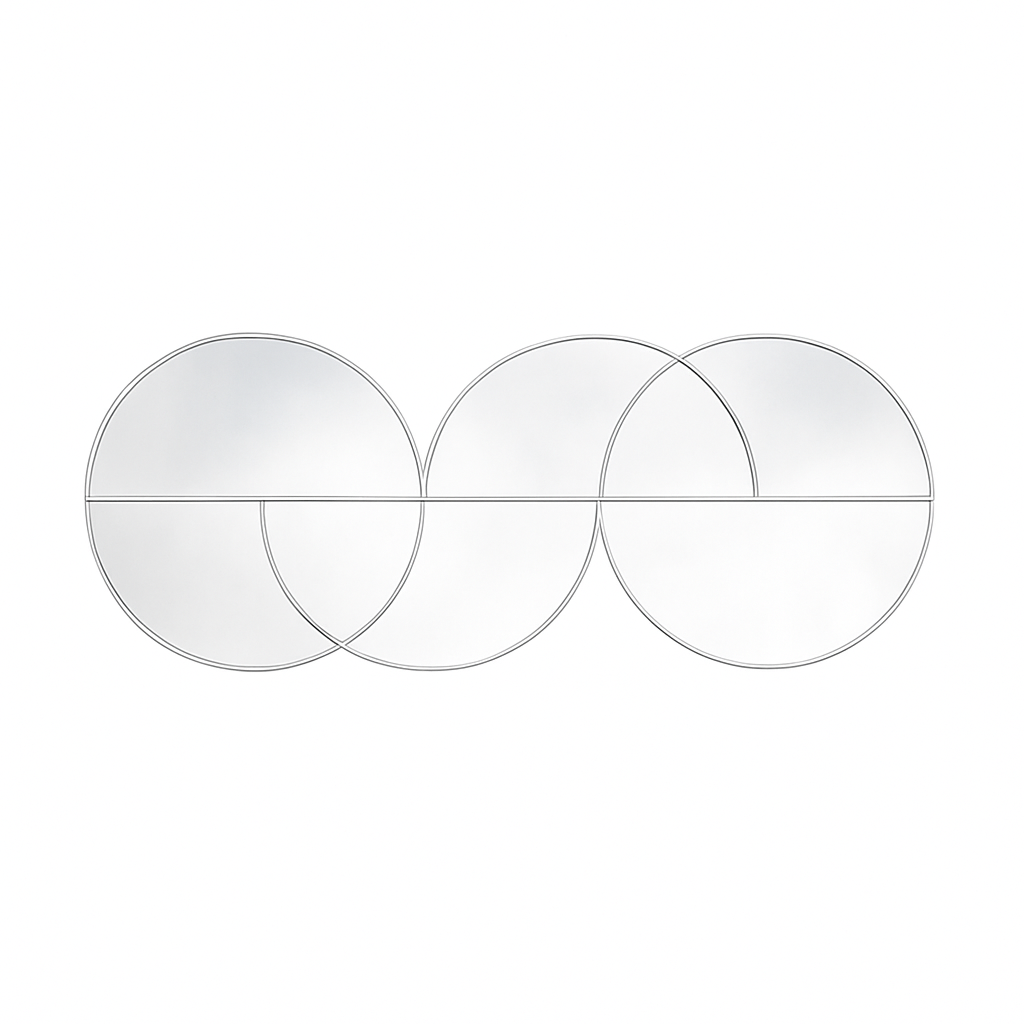 Un espejo con diseño geométrico único que aporta estilo y amplitud a cualquier ambiente. Su estructura de círculos entrelazados lo convierte en una pieza moderna y versátil, ideal para livings, pasillos o dormitorios.
