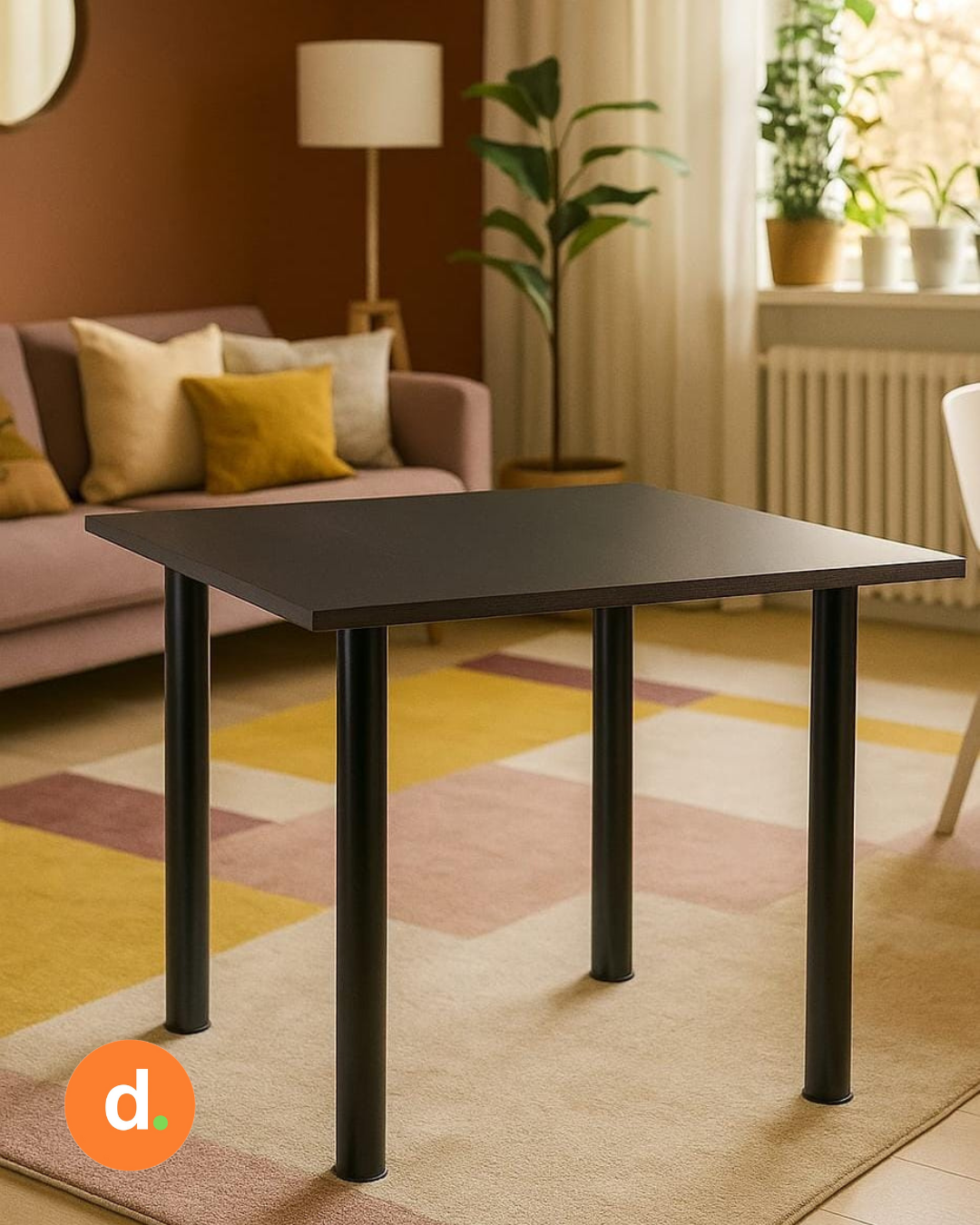 Diseño simple, resistente y funcional. Esta mesa de líneas rectas es perfecta para espacios modernos, pequeños comedores o zonas de trabajo. Su tapa laminada de fácil limpieza se combina con patas metálicas robustas que garantizan estabilidad y durabilidad.