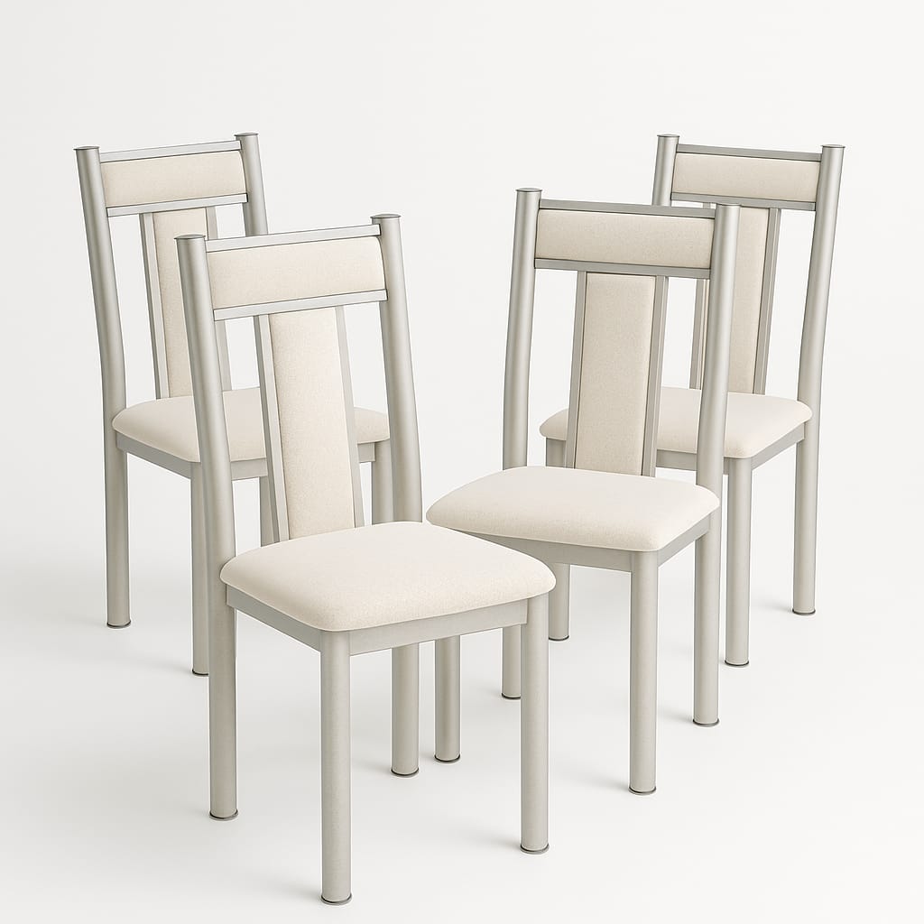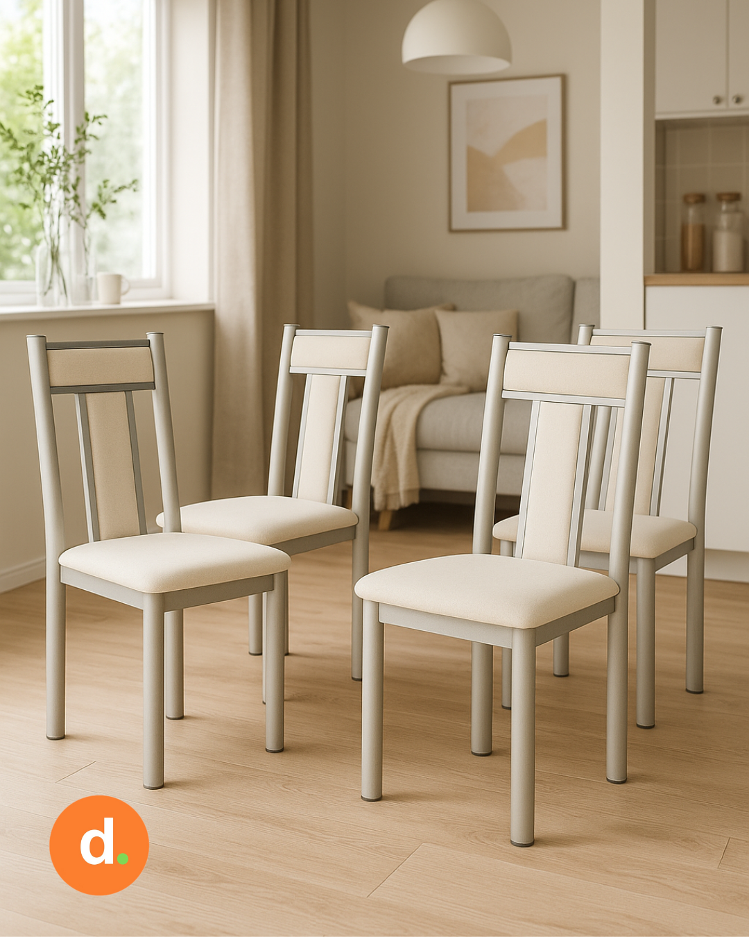 Transformá tu comedor en un espacio cálido y actual con este set de 4 sillas tapizadas. Con estructura de caño y líneas limpias, estas sillas combinan resistencia y estilo. El tapizado a elección aporta una sensación de suavidad que invita a quedarse.