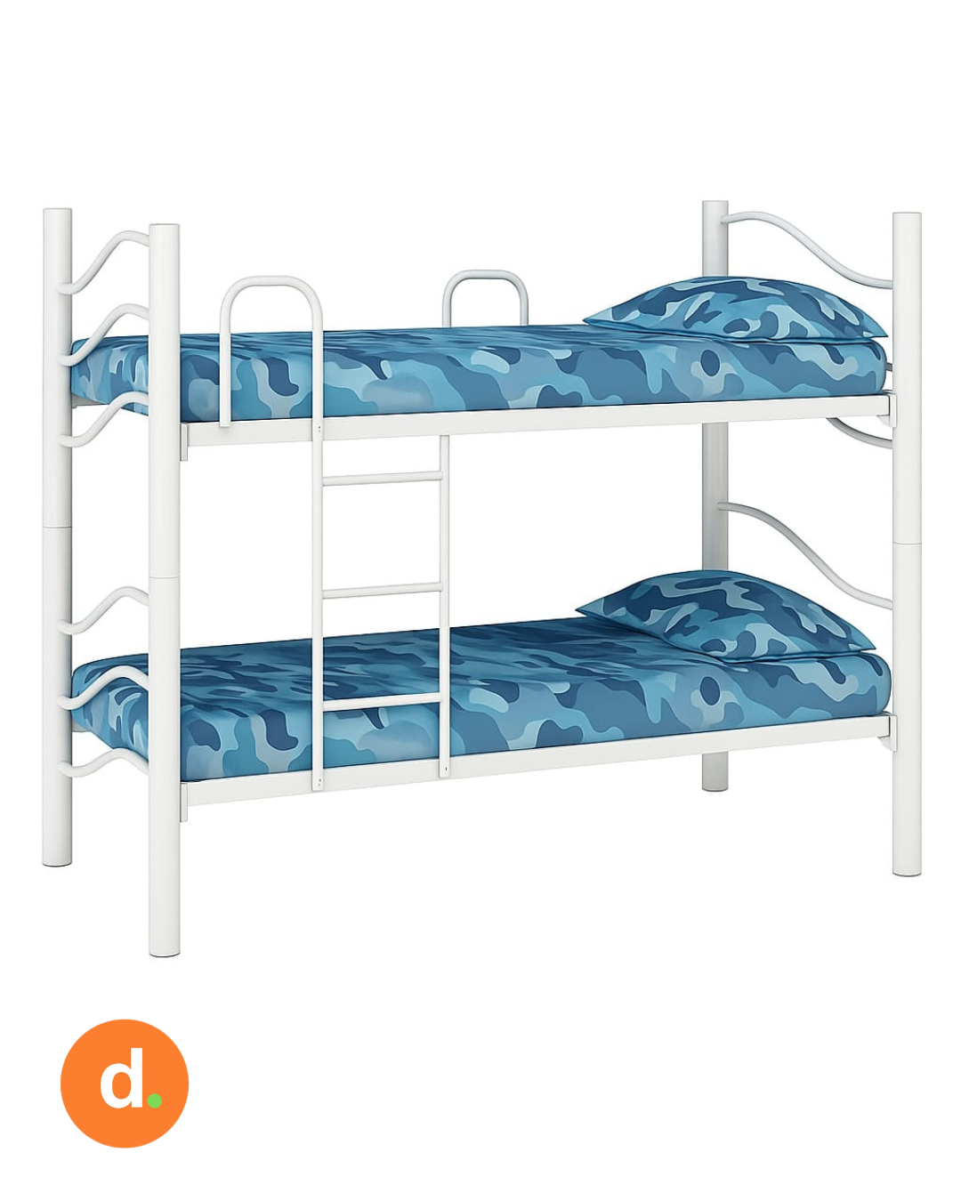 Cama cucheta de estructura metálica resistente, ideal para optimizar el espacio en habitaciones compartidas. Su diseño moderno y funcional incorpora una escalera para un acceso seguro a la cama superior, junto con barandas de protección que brindan mayor seguridad para niños y adolescentes. Las líneas curvas en los laterales le dan un toque decorativo sin perder solidez estructural. Perfecta para quienes buscan practicidad, durabilidad y un diseño compacto.