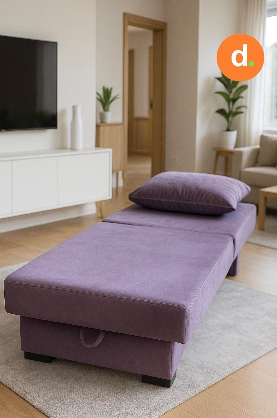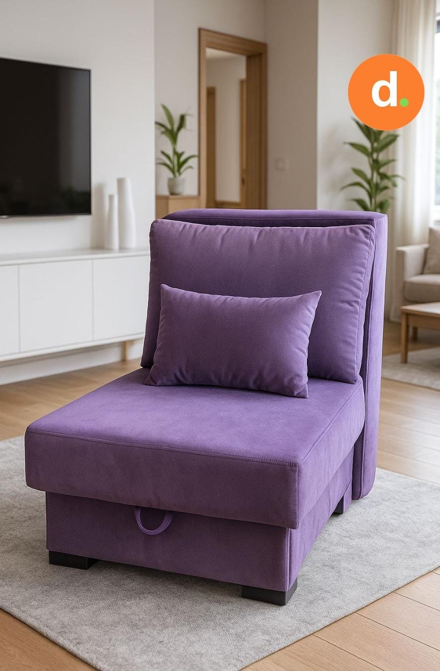 Sofá cama de 1 plaza, diseñado para optimizar el espacio y aportar practicidad a cualquier ambiente. Su estructura resistente y acolchado confortable lo convierten en una opción ideal tanto para descansar como para recibir visitas. Se transforma fácilmente de sofá a cama, ofreciendo una solución funcional sin perder estilo. Fabricado con materiales de alta calidad y personalizable para adaptarse al gusto y necesidades de cada cliente. Contiene baulera debajo del asiento.