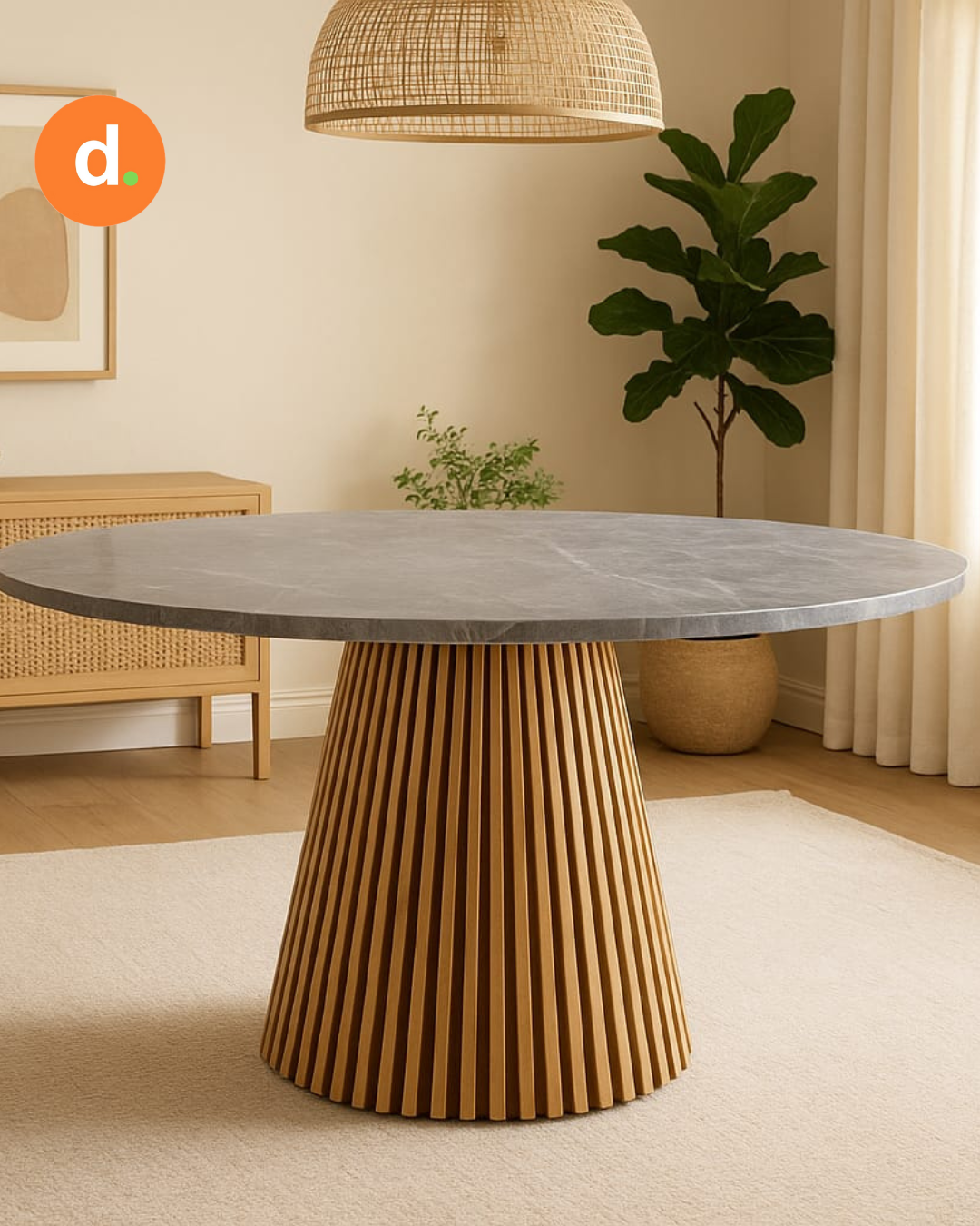 Diseño moderno y sofisticado que combina la elegancia del SPL con la calidez de la madera. Su base de listones verticales en tono natural crea un estilo único, aportando personalidad y distinción a cualquier ambiente.