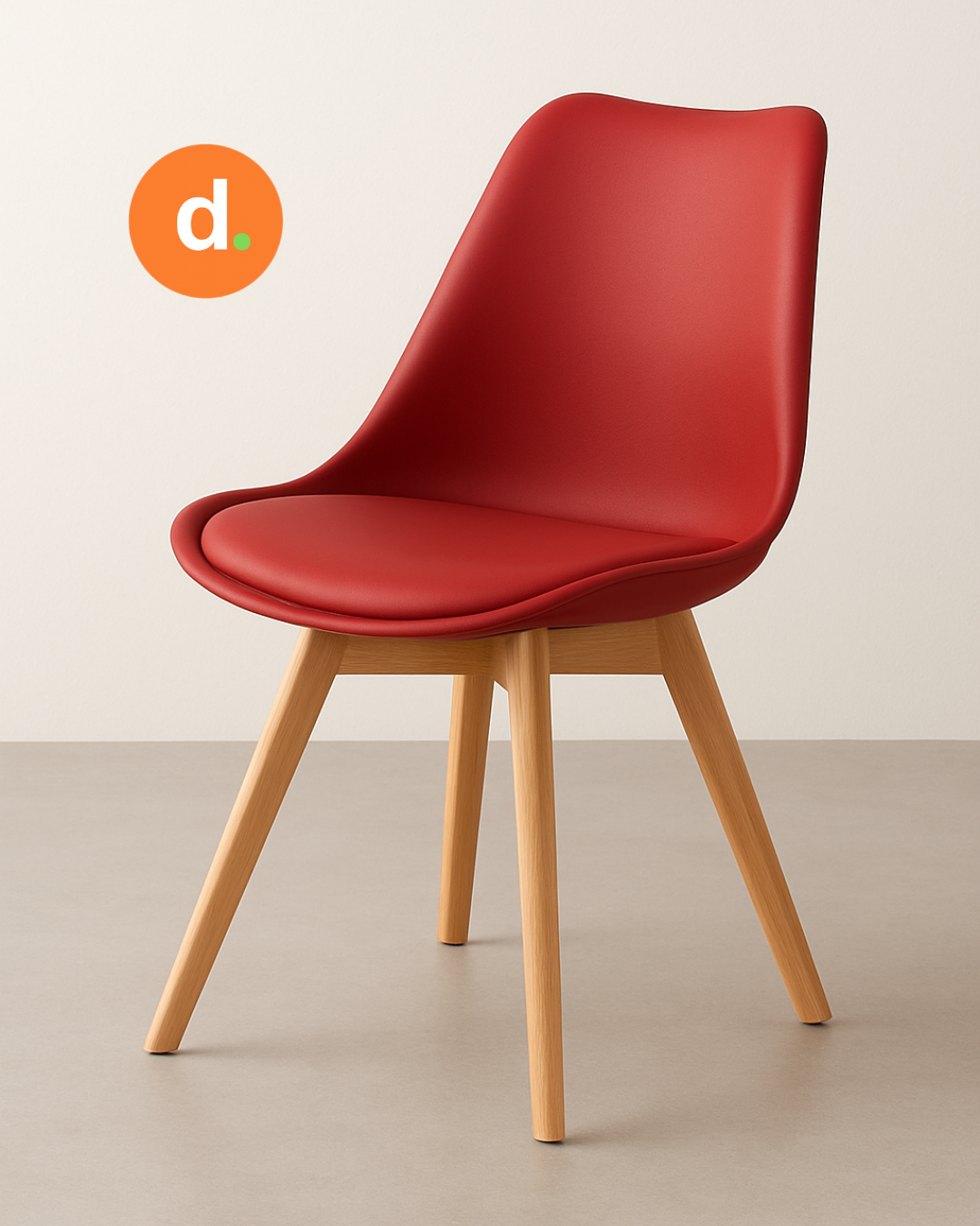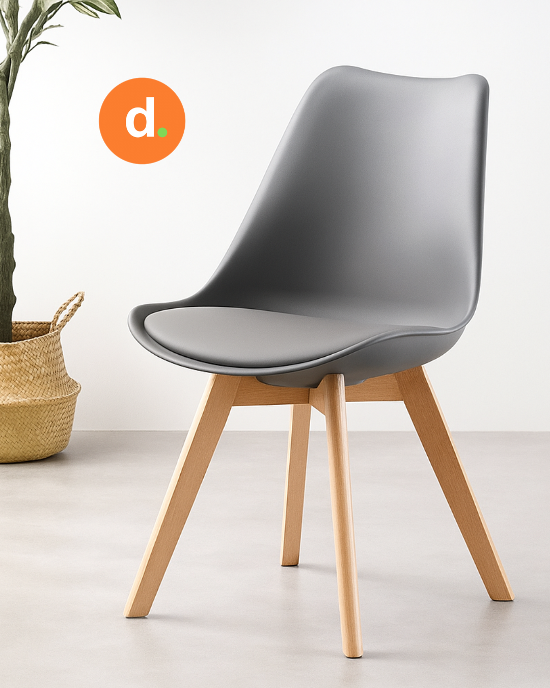 El asiento está realizado en polipropileno de alta resistencia, un material liviano, duradero y fácil de limpiar, acompañado por un almohadón tapizado que aporta suavidad y comodidad en el uso diario.